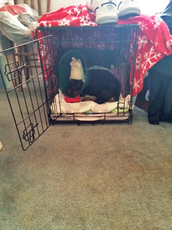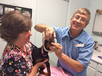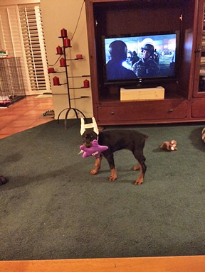 Coco and Dakota - last play time for the ears must stay clean until standing ... Luna is now home in Loma Linda, Ca.