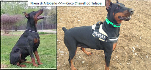 Coco's sire/dam: Pierce Patrick od Telepa/Kimbertal Bella of Newark Nixon's sire/dam: Maxim di Altobello/Luna di Altobello (Altobello Kennels)