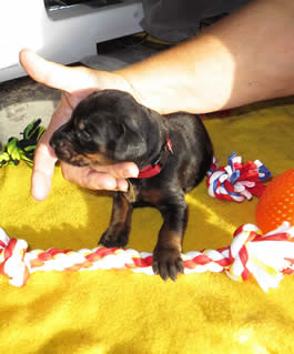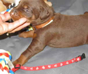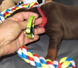Conner: red w/blue dots collar - now with lime green collar (reserved - NY)