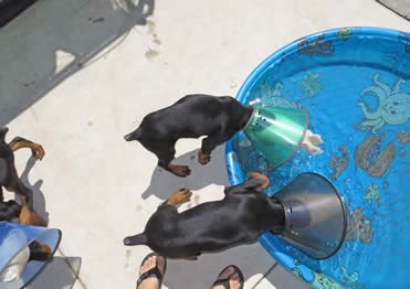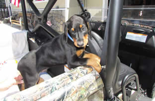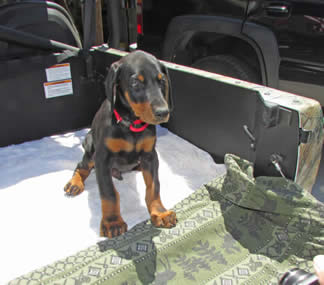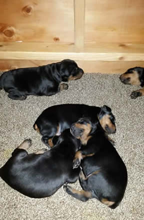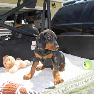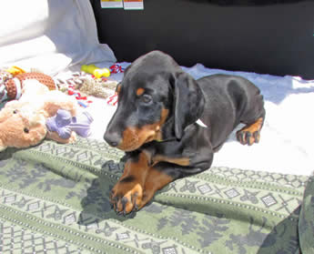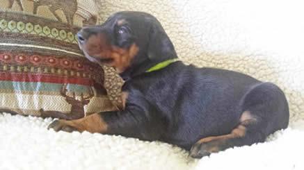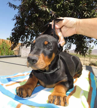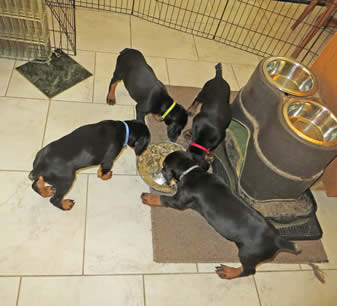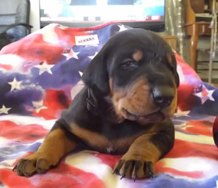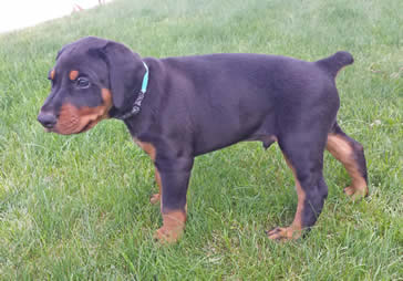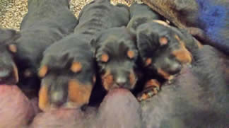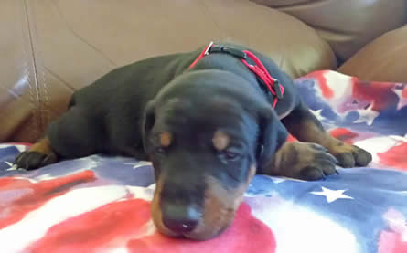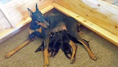 June 6, 2015 Dixy gave birth to 5 big healthy male puppies. All coat colors are black/rust, and black/Mahogany. this mating is a mixture of 1/2 American Doberman Pinscher pedigree and 1/2 European pedigree. This mating is for health and longevity in both parents. Both Dixy and Nixon are non aggressive Doberman Pinschers. This mating has many generations of solid titled championship titles in both dam and sire. Nixon - FCI 2012/2013 World Champion Maxim di Altobello, Luna di Altobello. Dixy - Westminster Cambria Cactus Cash/Cambria Kennels, Nec Aspera Terrent in dam's pedigree lines.