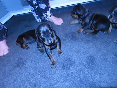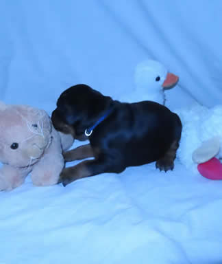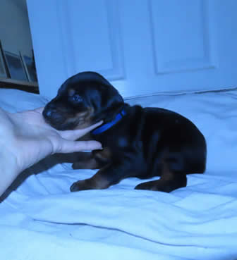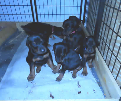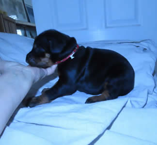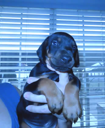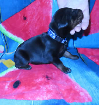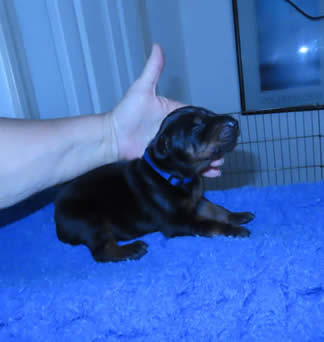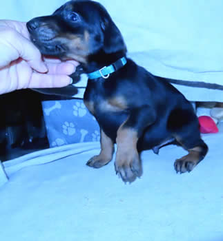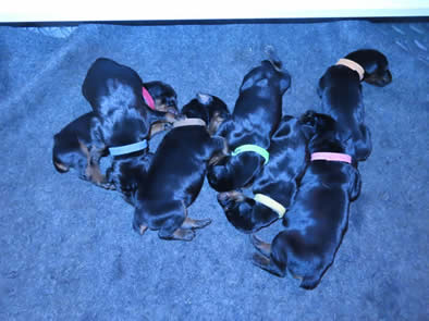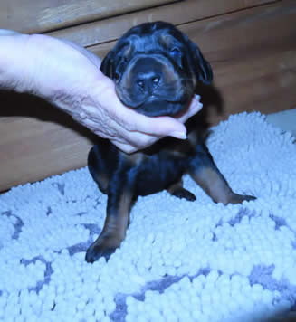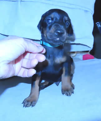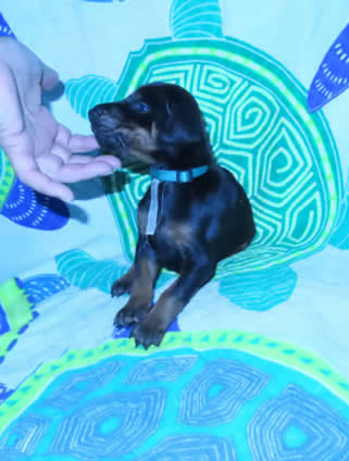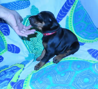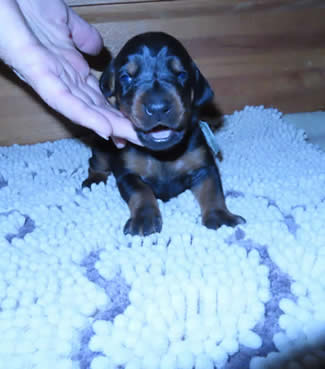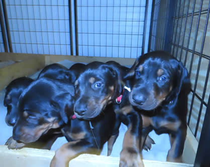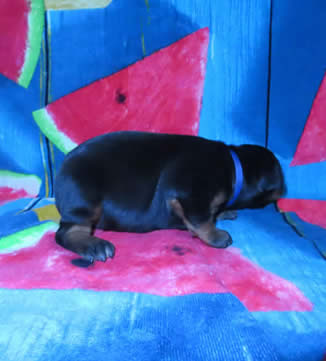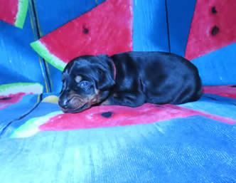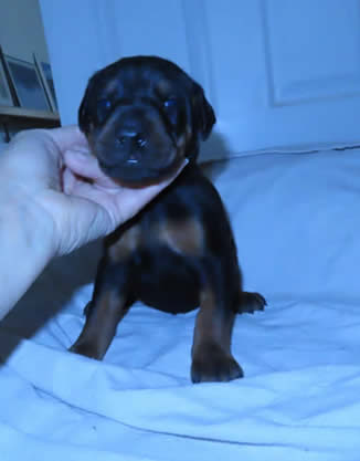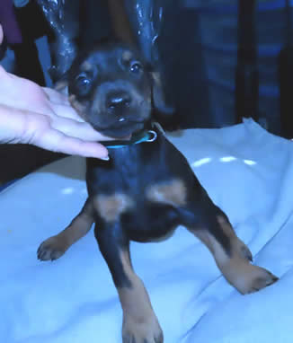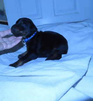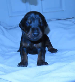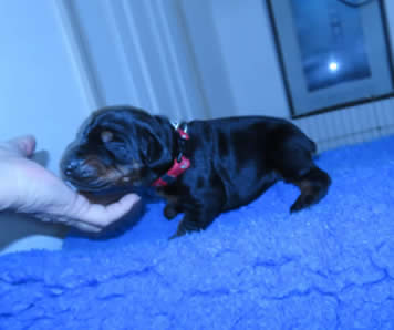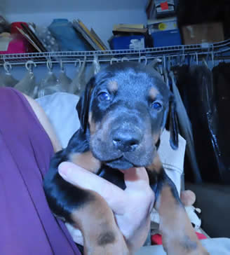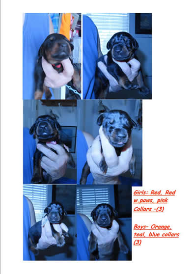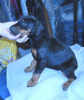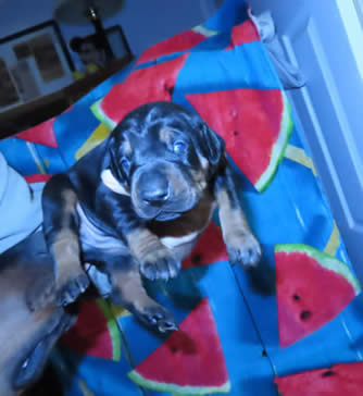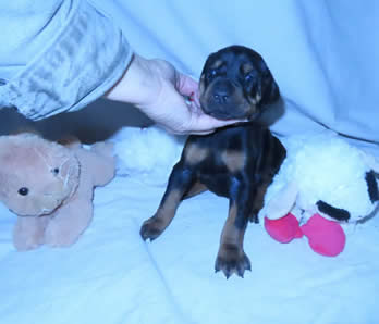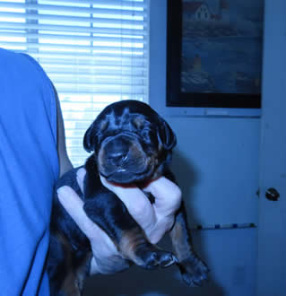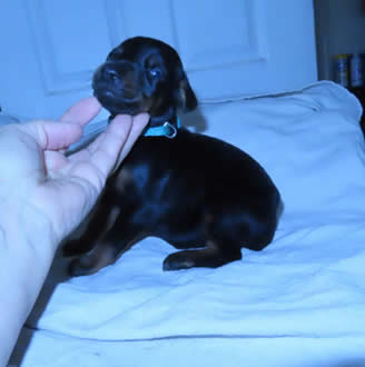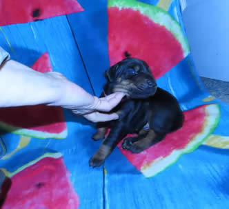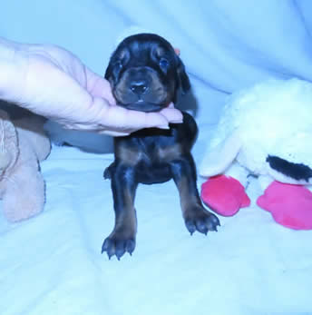 Puppies will come with tail docked. (a fyi - vet does my tail docking, and should they look like eraser head like, it is not the vet's fault. It is momma constantly licking puppies behind cleaning them and stitches can come off from this.) Puppies will be vet checked again at age 6 weeks, and have 1st vaccination shot, worming meds started, and microchipped. At 7 1/2 weeks of age those pups that are having ears cropped will be scheduled at this time. Pup family should provide a picture of crop style preferred. Ears must stay posted until standing. There is no excuse not following instructions or directions from me or my vet with cropped surgery/posting. Once puppies are placed in their new homes, the families should have names for their puppies so I can enter this information with AKC to register all the puppies - no exceptions. It is a price you pay. You can put this certificate in a safe place knowing you have a purebred Doberman Pinscher pup, and is registered with AKC. All puppies will be 'limited AKC' registration. A limited health contract will be with each pup. My goal is bring healthy puppies to a family to enjoy as long as providing loving, caring environment as each pup grows. Please know the breed, and any inherint health risks this breed like any other breed has.