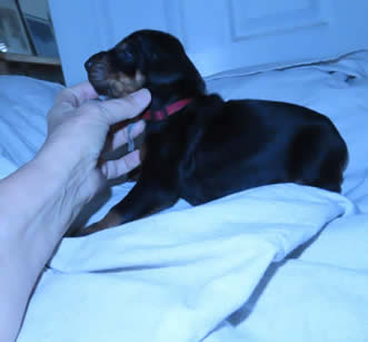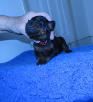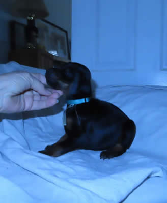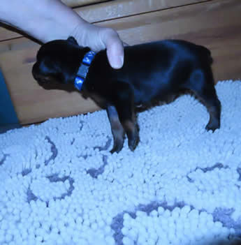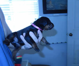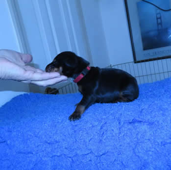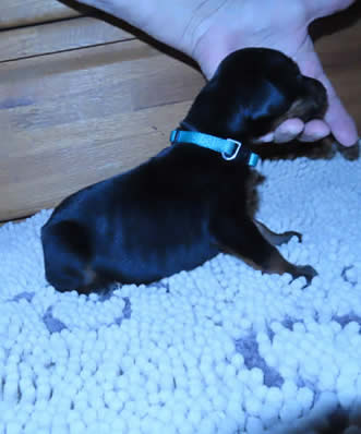 Week #2 April 4th - April 10th - Near end point for neonate time, nails trimmed velcro collars changed to xs snap on collars. Puppie starting to open eyes