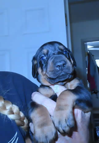 Week #4 - April 18th - May 1st -- A lot has been keeping me busy to post updates weekly. Puppies were moved from whelping box to bigger kennel den. They have their teeth, still with momma (Gabi), and are socializing more and more. I have introduced warm goat's milk and puppy formula for several days. It took a few to get but they did once they say each other loping it up. Last week of April I have introduced 1 feeding a day to start weaning process. They get roughly now 2 cups of soaked special kibbles, some shredded chicken breast meat, and my Honest Kitchen mixture. They gobble it up. Week 6 I will be weaning them more and letting Gabi have more me time. Human momma enjoys raising these pups trememdously. All puppies are reserved, except my littlest one, but he is catching up now but I am still holding him back so he can grow more. He is a hoot though. Happy little boy - Ebo. All Gabi's pups are growing every day it seems.