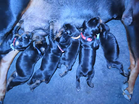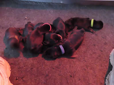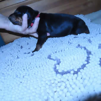 Week #1 March 26th - April 3rd - Neonate stage - momma and puppies are being tended to almost 24 hours a day. Nails trimmed.
