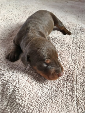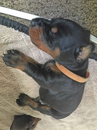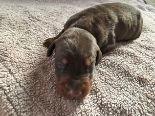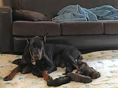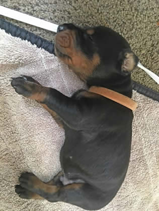 Nixon di Altobello and Molly were mated January 2016. Molly's litter was born via C section March 4, 2016. Molly delivered 12 puppies - 7 boys and 5 girls of which 7 puppies are black and mahogany coat color, and 5 (3 males and 2 females) are red/rust coat colors.
