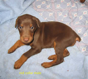 Red collar male _"Yager" SOLD (he will be AKC standard size - like Xena) (note: he is growing out of collar and may change.)
