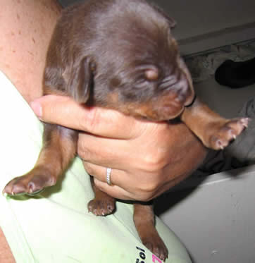 Puppies are 12 days old here. Their eyes are opening and they are just starting to get more stronger standing, and walking adding to their growing character of cute darlings. Pictures show females first and male puppies next. A Youtube video of them at 12 days old link also for viewing.